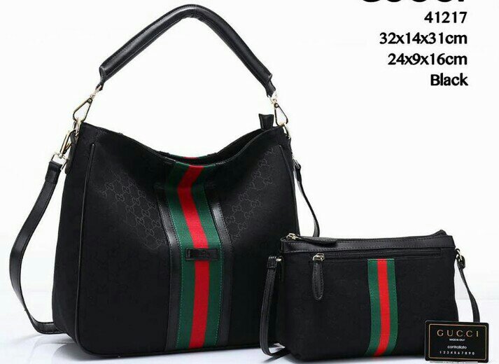 Tas merek Gucci ini adalah tas yang memiliki ukuran 32x14x31 cm dan 24x9x16 cm. Tas Gucci ini juga terdapat satu warna yaitu Hitam.